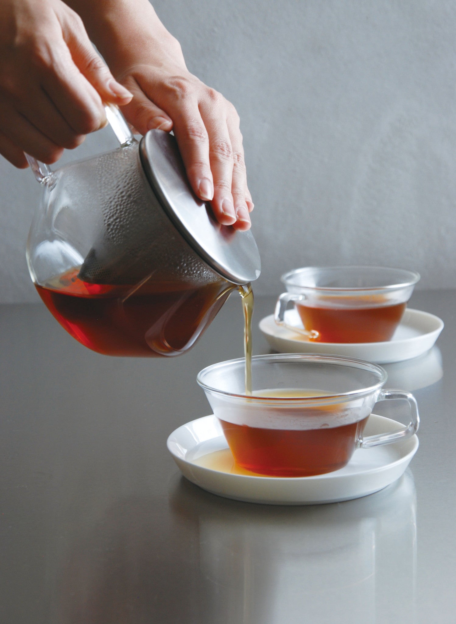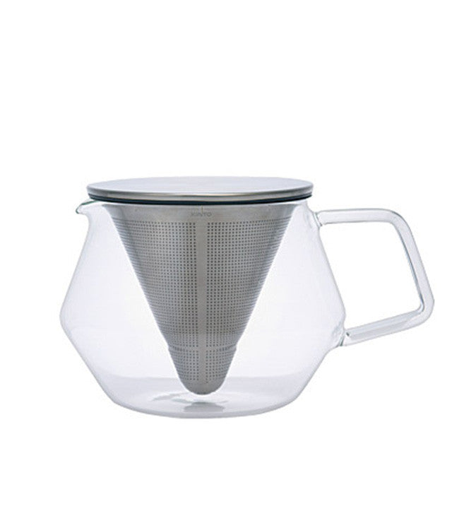 The combination of stainless steel and glass is designed to glitter just like a jewel. This roomy teapot is inspired by a cut diamond. The teapot has a durable stainless steel strainer, is made of heat-resistant glass, and is perfect for any kind of tea leaves. The lid is combined materials of stainless steel and durable plastic and has a space for the air to buffer the heat of boiled water.