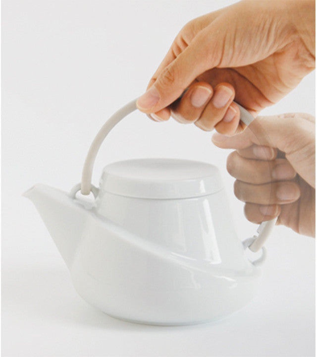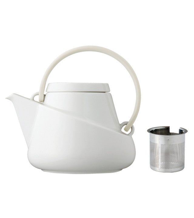 The Ridge teapot is a teapot based on the concept of ergonomics. The handle is designed to be held at an angle, which reduces wrist stress for easy pouring. The lid won't fall off when the pot is tipped, and stays in place even when the strainer is removed. The strainer is made of durable stainless steel and can strain small, broken leaves, or can be removed to brew tea bags. Together with cups or mugs in the Ridge series, this teapot makes a wonderful gift.
